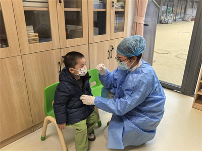 老师第一时间报告保健室,保健老师立即通知托育园应急处置小组,马上启动应急预案,并及时进行逐级上报、隔离、消毒等应急处置工作。