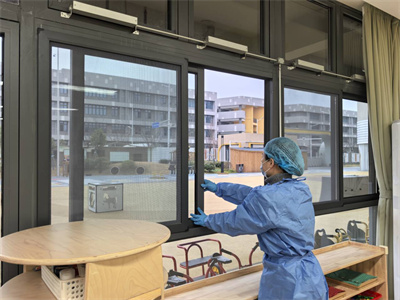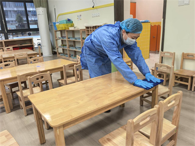 呕吐幼儿离开后,保健室进行全面消毒。
