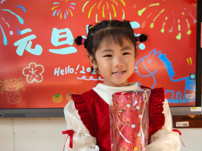红彤彤的山楂串、粉嫩嫩的草莓串、金灿灿的橘子串,一排排、一串串,搭配着 “金马送甜” 的装饰牌,看得人垂涎欲滴。宝贝们围在桌旁,骄傲地向小伙伴炫耀:“你看,我串的糖葫芦像小马的铃铛!”“我的糖葫芦要送给爸爸妈妈,祝他们马年甜甜蜜蜜!” 老师们还为每串糖葫芦贴上宝贝们的名字标签,这不仅是一串甜甜的美味,更是孩子们送给马年的专属礼物。