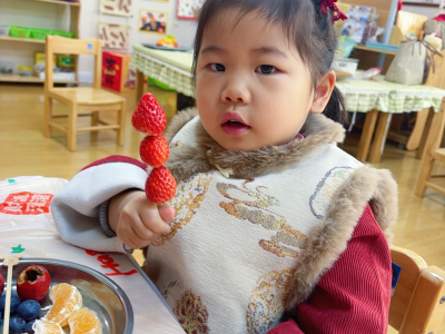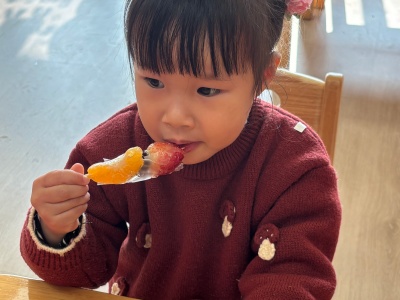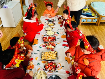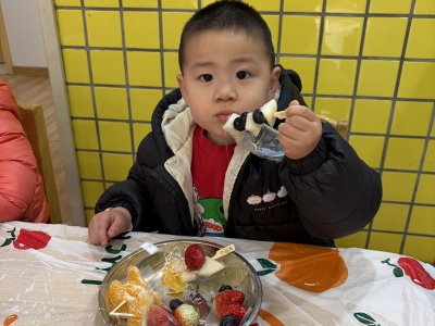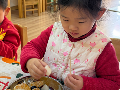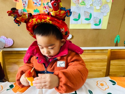 老师们提前备好新鲜山楂、草莓、圣女果,还有熬得晶莹剔透的冰糖浆。宝贝们认真听着制作步骤,小心翼翼地将水果串在竹签上,再裹上一层甜甜的冰糖,就像给马年串起一串串甜蜜祝福。不一会儿,一串串红彤彤、亮晶晶的糖葫芦新鲜出炉,酸甜香气萦绕鼻尖。