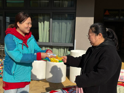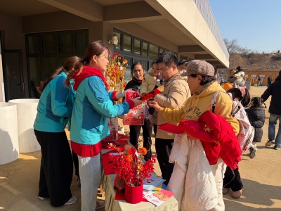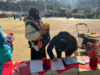 随后,家长们带着宝贝凭集满印章的拓印版画,到兑奖处领取元旦定制游戏包礼品 —— 实用的婴儿口水巾、护衣,可爱的毛绒糖葫芦,还有干货满满的育儿手册,每一份礼品都饱含着育儿园的用心与祝福。最后,全体家庭与工作人员手持 DIY 灯笼或礼品包,拍摄元旦大合照,一张张笑脸定格成最温暖的画面。